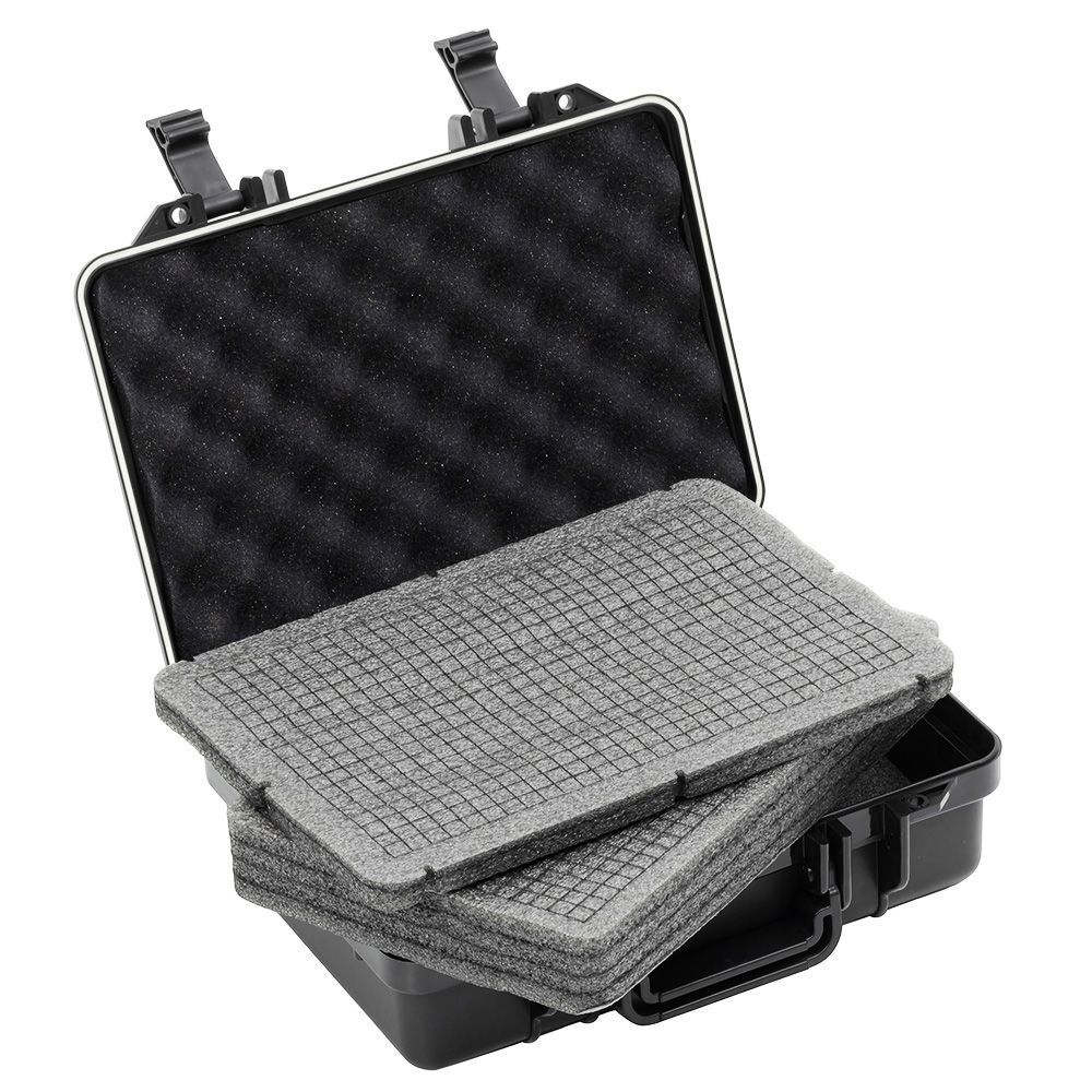 Кейсы АЛЬФА серии Профи выполнены из сополимера полипропилена и сохраняют свои защитные свойства при температурных режимах от -25 до 90 ℃. Резиновая прокладка делает данные кейсы герметичными и водонепроницаемыми. На всех моделях имеется клапан для выравнивания давления и удобные ручки.