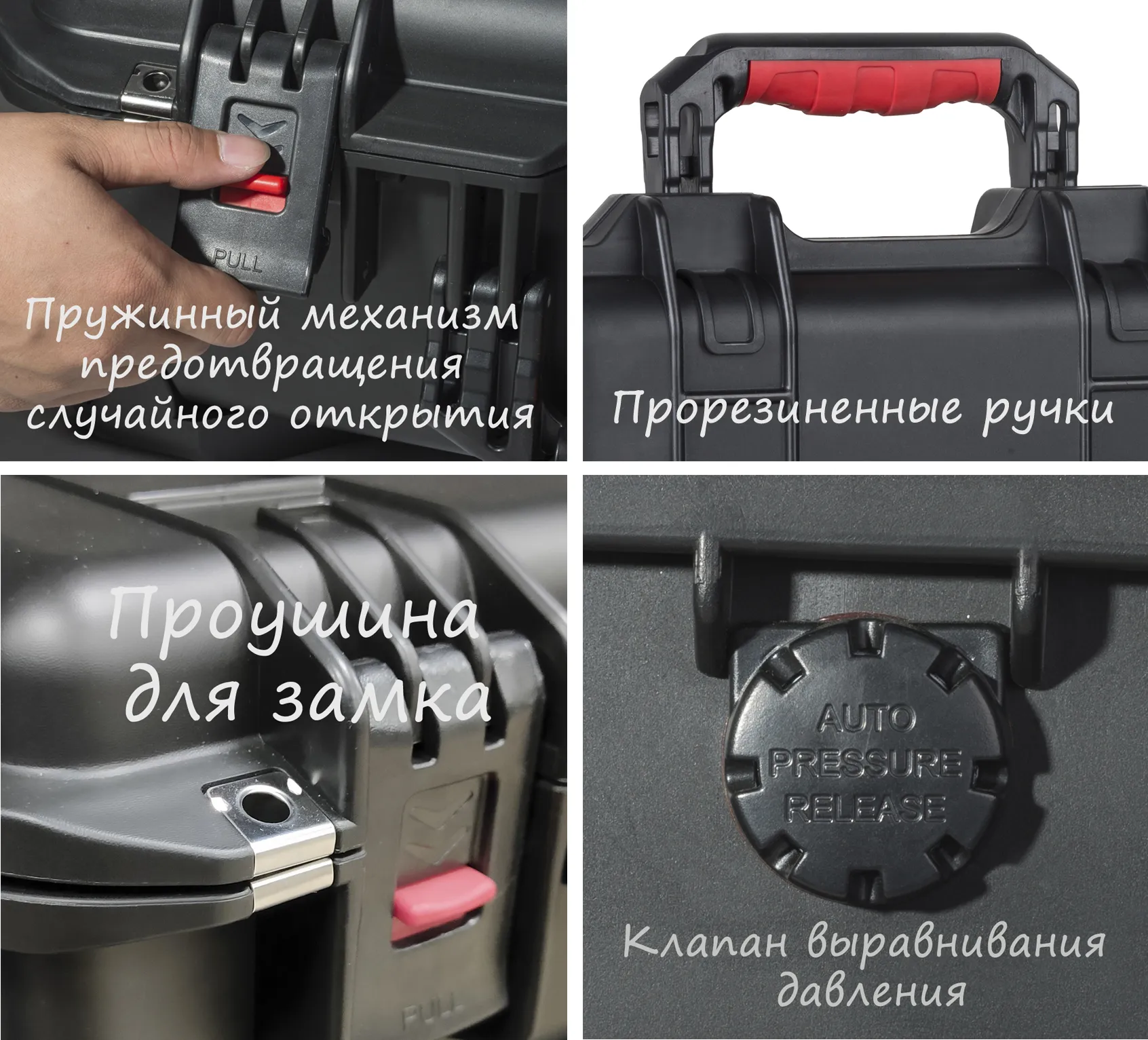 3.Автоматический атмосферный клапан выравнивает давление в кейсе, при этом сохраняя герметичность, что позволяет открыть кейс без затруднений при перевозке авиатранспортом.