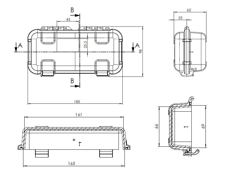 2. Соединение шип-паз между крышкой и корпусом обеспечивает кейсу степень защиты по классу IP67.