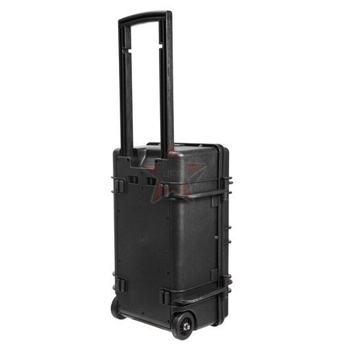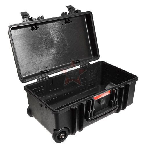 Кейсы Калибр производятся методом литья под давлением из полипропилена с добавлением армирующих веществ - фибер волокон. Это делает данные кейсы одними из самых прочных в своем классе и позволяет пользоваться ими при температурах от -40*С до +90*С. Фурнитура данных кейсов также изготовлена из полипропилена с резиновыми элементами, стальными цилиндрами в петлях и замках, и выполнена на очень высоком уровне. На кейсах имеются петли для навесных замков и пломб, планка для маркировки и клапан для выравнивания давления. Для удобства транспортировки кейс оснащен прочными роликами.
