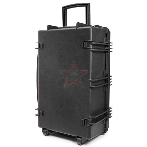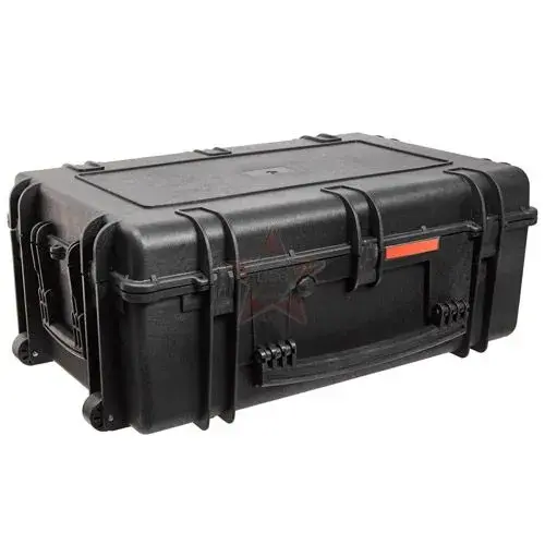 Кейсы Калибр производятся методом литья под давлением из полипропилена с добавлением армирующих веществ - фибер волокон. Это делает данные кейсы одними из самых прочных в своем классе и позволяет пользоваться ими при температурах от -40*С до +90*С. Фурнитура данных кейсов также изготовлена из полипропилена с резиновыми элементами, стальными цилиндрами в петлях и замках, и выполнена на очень высоком уровне. На кейсах имеются петли для навесных замков и пломб, планка для маркировки и клапан для выравнивания давления. Для удобства транспортировки кейс оснащен прочными роликами.