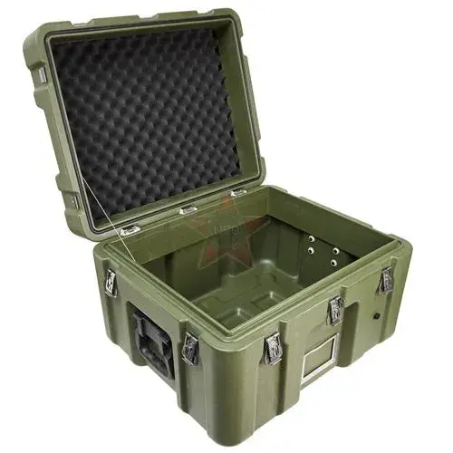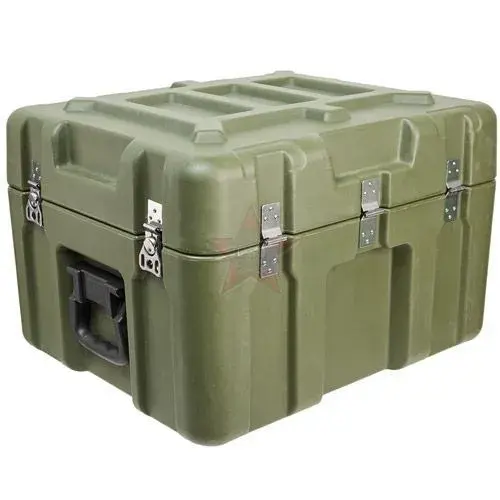 Элементы корпуса кейса сделаны методом ротационного формования из высокопрочного полиэтилена. Фурнитура изготовлена из нержавеющей стали в виде замков "бабочка" с петлями для навесных замков и пломб. Ручки выполнены из того же пластика и плотно прилегают к корпусу за счет того, что подпружинены.